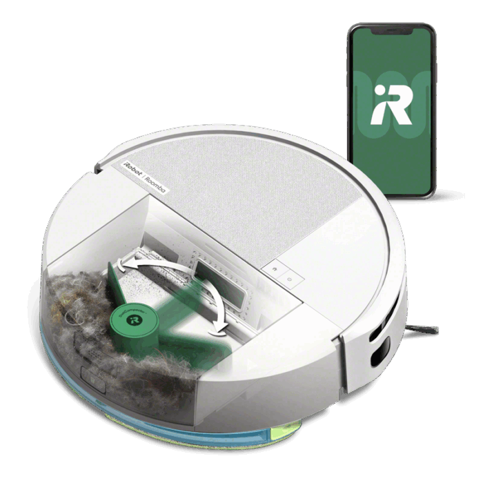 Roomba® Combo 205 DustCompactor™ е прахосмукачка-робот за сухо и мокро почистване с иновативна технология за механично уплътняване на боклука директно в контейнера на робота. Съхранява мръсотията, събрана в продължение на 60 дни и свежда до минимум почистването на контейнера след всеки почистващ цикъл.